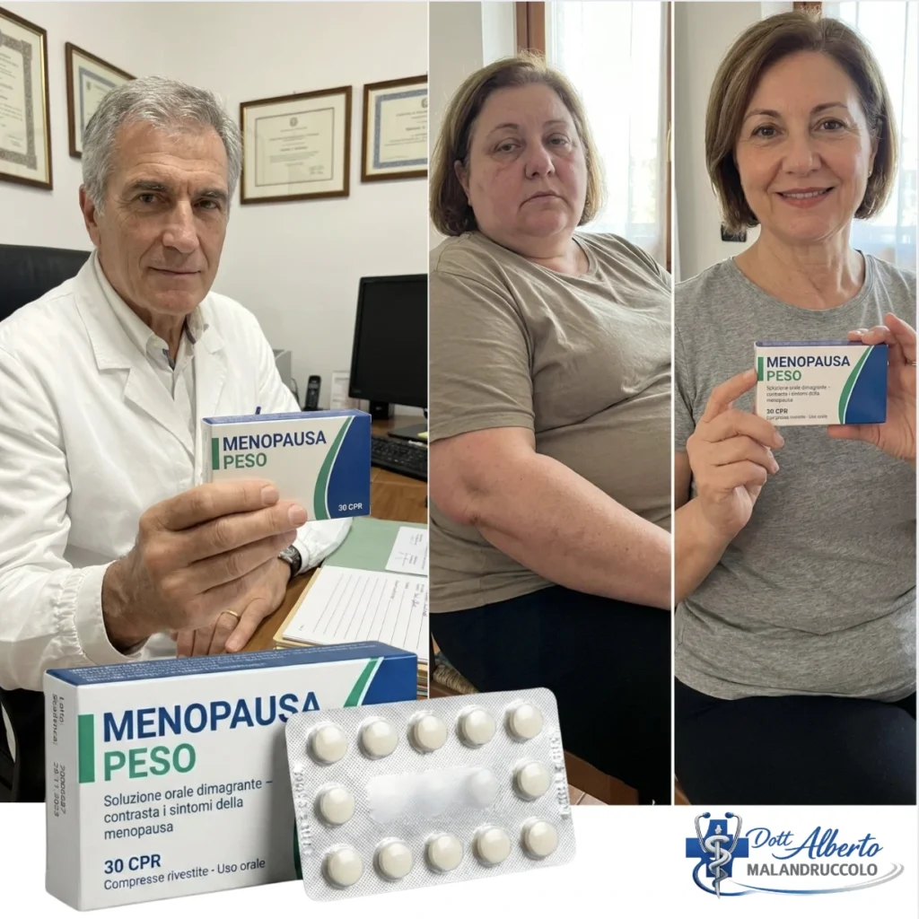"Dopo 6 mesi di menopausa ero ingrassata 12 kg. Avevo provato di tutto: palestra, diete, niente. Con Menopausa Peso ho perso 10 kg in 18 giorni SENZA SOFFRIRE LA FAME. Le vampate sono sparite dalla prima settimana. Finalmente dormo tutta la notte!"